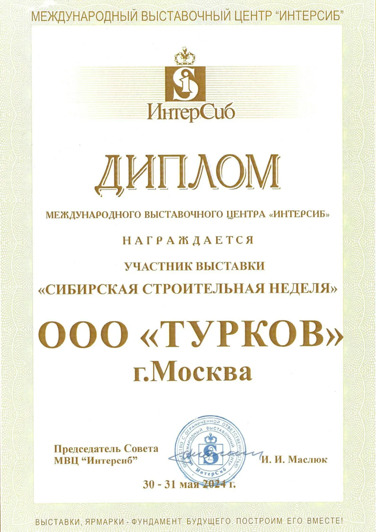 Дипломы крупнейших выставок отрасли